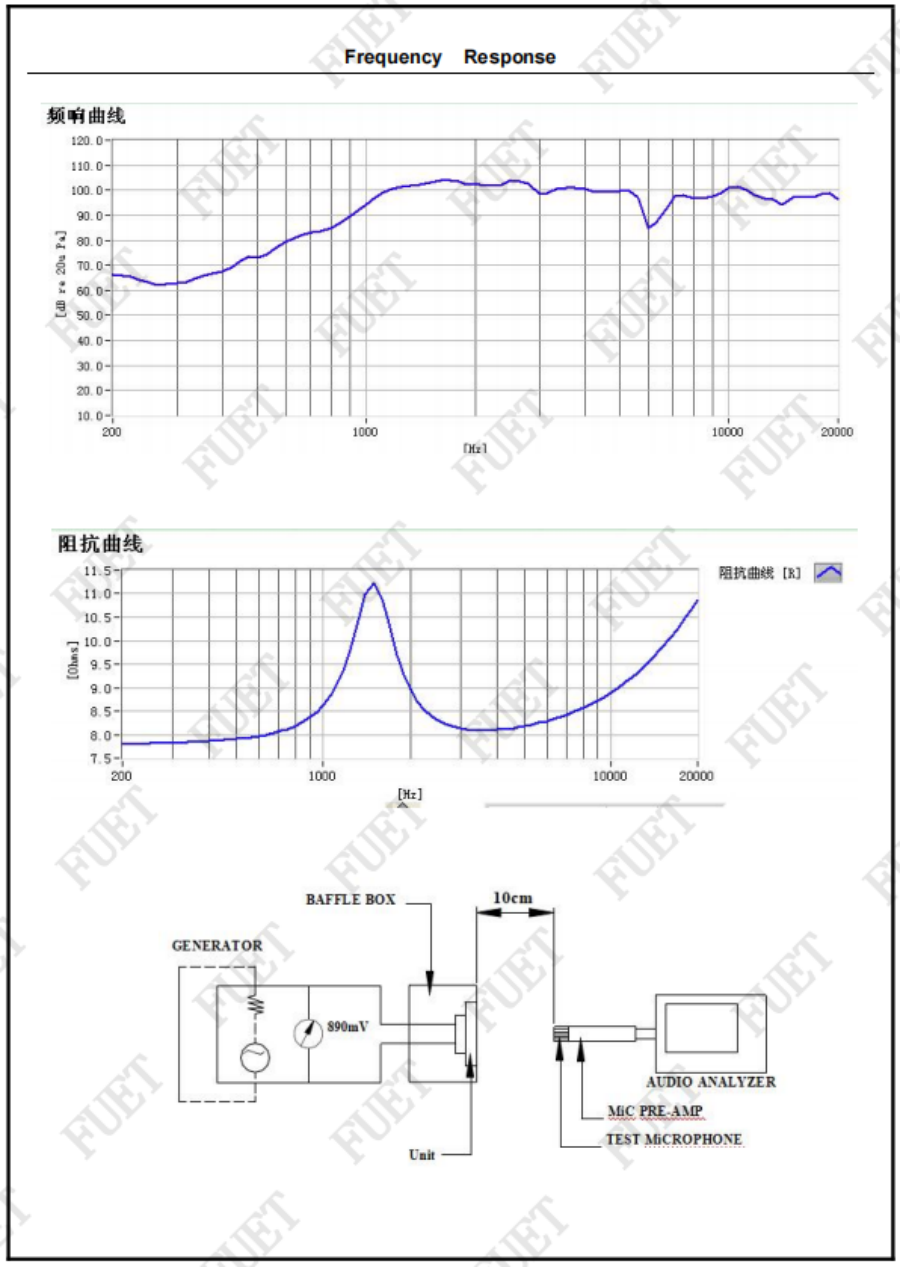 阻抗 8.0Ω±15% At 3000Hz 1.0Vrms